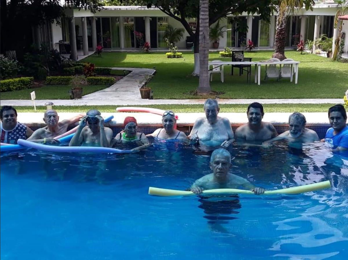 Traslado dentro de la residencia (ir a los comedores, a las áreas de esparcimiento, a tomar el sol, cortar frutos, pasear por el lago). Acompañamiento en la alberca, durante los ejercicios en el gimnasio, etc.