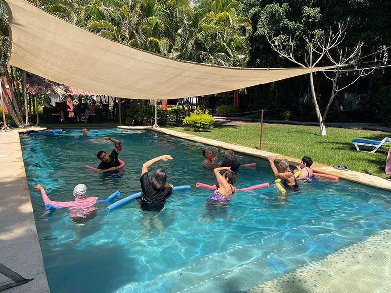 Actividades tales como ejercicio, nadar, caminar por el lago y jardines, participar en el cuidado de nuestros árboles frutales, sesiones de hidromasaje en el jacuzzi.